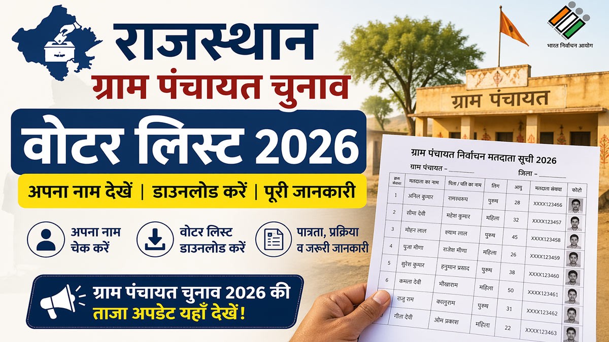 Rajasthan Gram Panchayat Chunav Voter List 2026: राजस्थान में होने वाले ग्राम पंचायत चुनाव के लिए नई वोटर लिस्ट जारी कर दी गई है। राजस्थान पंचायत राज चुनाव, ग्राम पंचायत समिति एवं जिला परिषद चुनाव में मतदान करने के लिए मतदाता सूची में नाम होना अनिवार्य है।