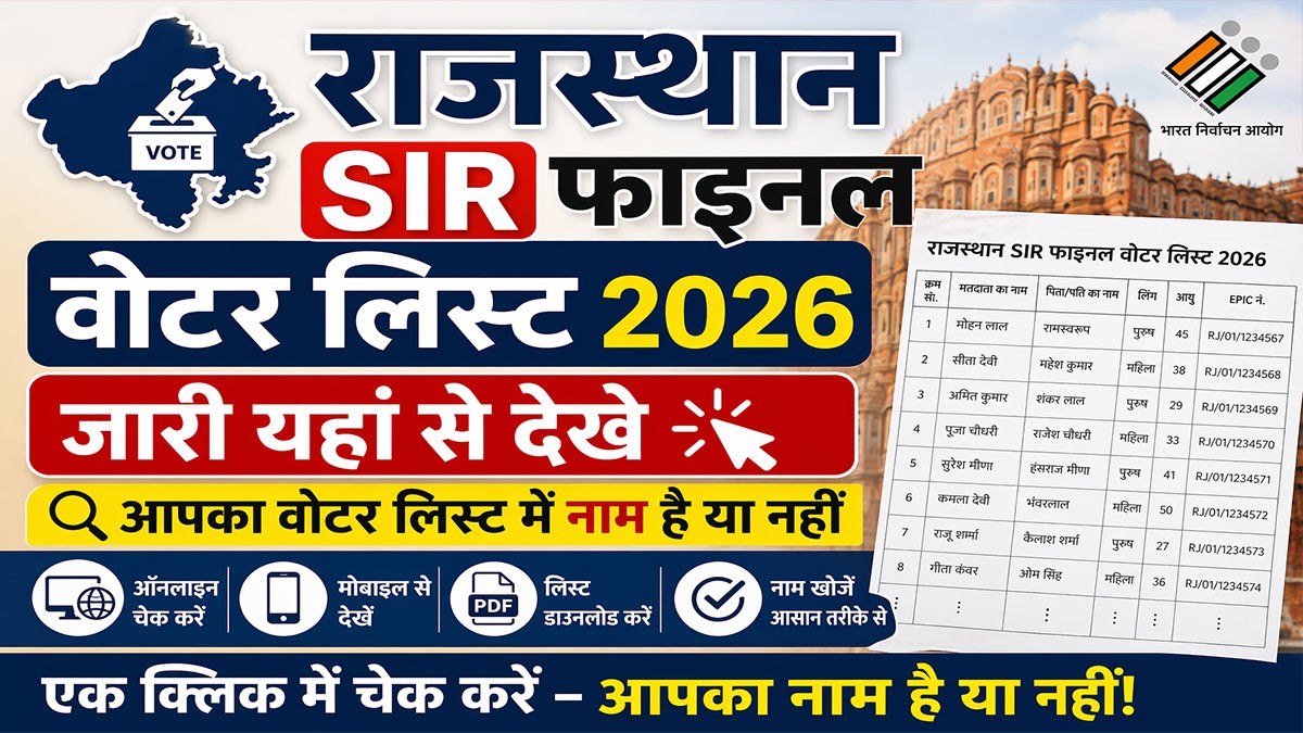 Rajasthan SIR Final Voter List 2026: राजस्थान SIR फाइनल वोटर लिस्ट 21 फरवरी 2026 को जारी कर दी गई है। अब मतदाता यह चेक कर सकते हैं कि उनका नाम अंतिम मतदाता सूची में शामिल है या नहीं।