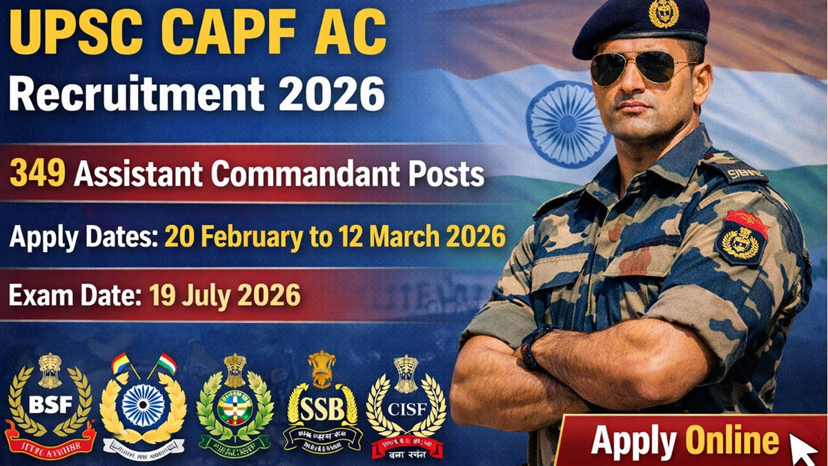 यूनियन पब्लिक सर्विस कमीशन (UPSC) ने केंद्रीय सशस्त्र पुलिस बलों में Assistant Commandant (AC) के पदों पर भर्ती के लिए UPSC CAPF AC Recruitment 2026 का नोटिफिकेशन जारी कर दिया है।