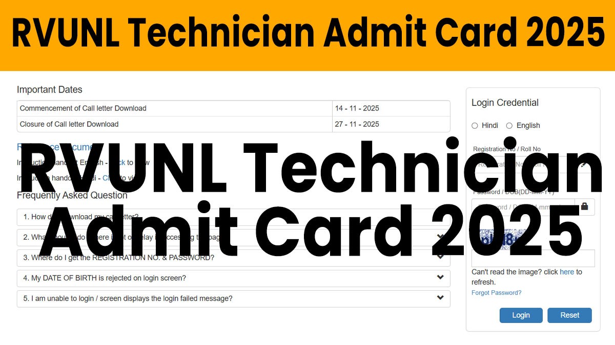 राजस्थान विद्युत विभाग की टेक्नीशियन भर्ती के एडमिट कार्ड 14 नवंबर 2025 को जारी कर दिए गए हैं। राजस्...