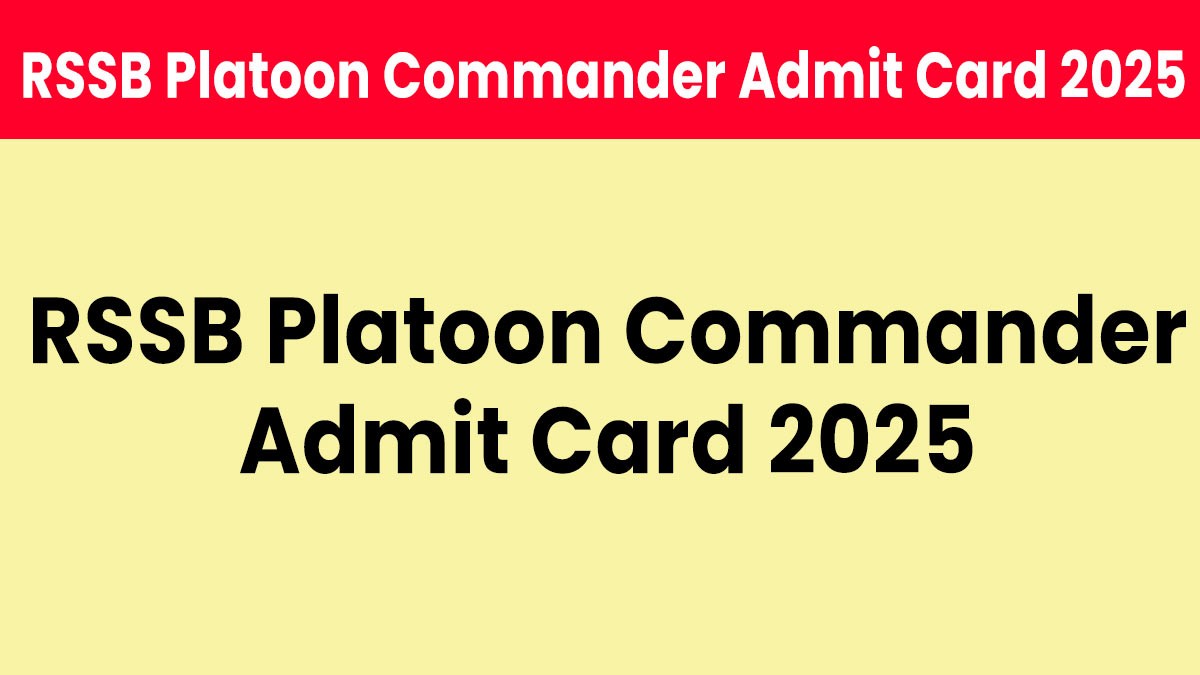 राजस्थान कर्मचारी चयन बोर्ड (RSSB) ने प्लाटून कमांडर पद के लिए एडमिट कार्ड जारी कर दिए हैं। राजस्थान...